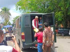 Riaumandiri.co - Warga Kampung Karo, Minas Timur, menyambut kedatangan Calon Bupati S.