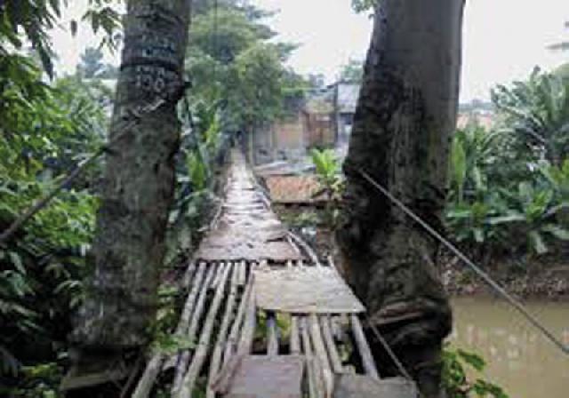 TELUK KUANTAN (riaumandiri.co)- Kondisi jembatan gantung yang menghubungkan .