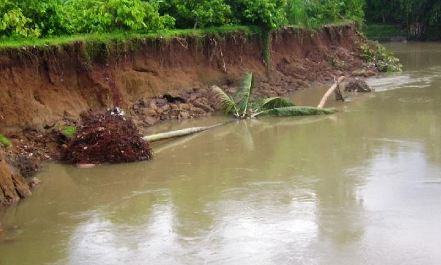 TELUK KUANTAN (HR)-Pengikisan tebing Sungai Kuantan ancam rumah warga akibat .