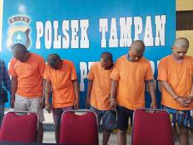 Riaumandiri.co - Sebanyak 5 pria diproses hukum di Kepolisian Sektor (Polsek) Tampan,.