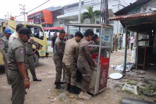 Riaumandiri.co - Satuan Polisi Pamong Praja (Satpol PP) Kota Pekanbaru membongkar bangunan.