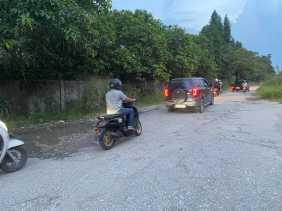 Riaimandiri.co - Kerusakan Jalan Bangau Sakti, Kelurahan Simpang Baru, Kecamatan Bina.