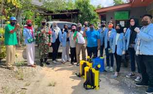 Mahasiswa Kukerta Unri Kecamatan Bukit Raya Semprotkan Disinfektan di Tangkerang Labuai