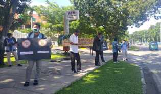 Bawa Papan Bunga, Sejumlah Mahasiswa Aksi Damai di Depan DPRD Riau