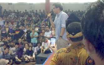 RIAUMANDIRI.CO, PEKANBARU - Pengamat politik Rocky Gerung memukau ribuan warga R.