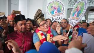 RIAUMANDIRI.CO, PEKANBARU - Cawapres nomor urut 02, Sandiaga Salahudin Uno, pagi.