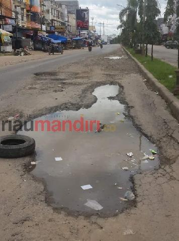 BAGANBATU (riaumandiri.co)-Kondisi Jalan Jenderal Sudirman Baganbatu Kecamat.