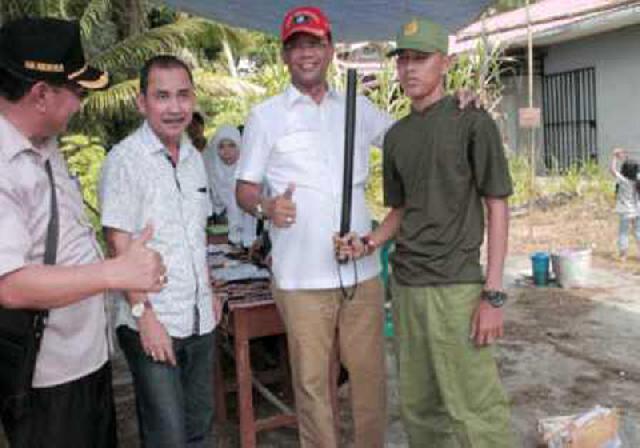 TANJUNGMELAWAN (riaumandiri.co)-Bupati Suyatno dan AMP meninjau lokasi intaka.
