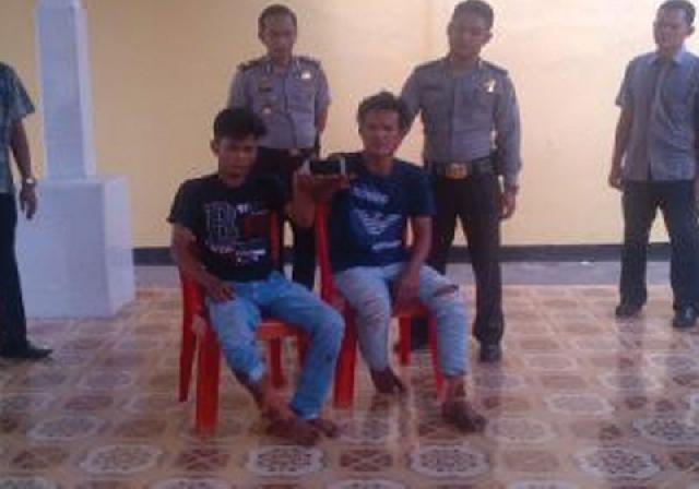 BAGANSIAPIAPI(riaumandiri.co)-Dua residivis jambret di Rokan Hilir meringis .