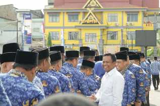 Riaumandiri.co - Wakil Bupati Rokan Hilir, H. Sulaiman, memimpin apel pagi 17 hari bu.