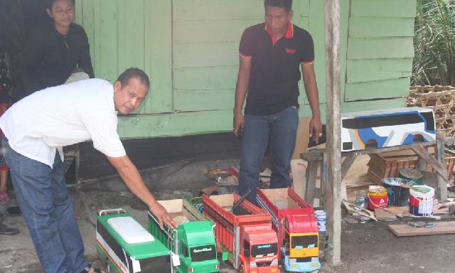 KEPENUHAN (HR)-Seorang pengrajin mobil-mobilan di Desa Kepenuhan Sejati, Kec.