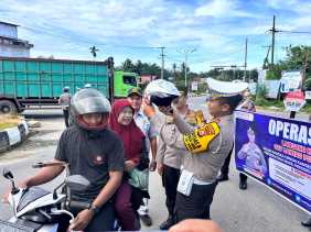 Ops Zebra 2024, Polres Rohul Berbagi Helm Gratis