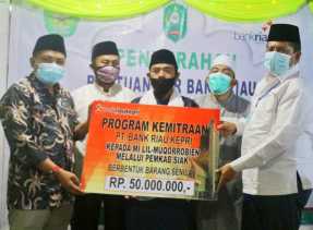 RIAUMANDIRI.ID, SIAK - Bank Riau Kepri (BRK) menyerahkan bantuan untuk pembangun.