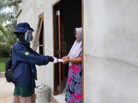 Mahasiswa Kukerta Unri Bagikan Masker Kain Gratis di Koto Gasib Siak