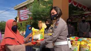 Sambut Hari Jadi ke-72, Polwan Polres Siak Bagi-bagi Sembako ke Masyarakat Terdampak Covid -19