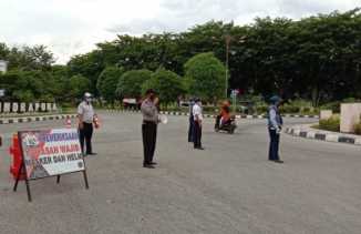 Petugas Gabungan di Siak Cek Suhu Tubuh dan Masker Pengendara yang Melintas di TASL