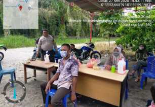 Tim Pengabdian Relawan Unri Bantu Jaga Posko Cegah Tangkal Covid-19 di Banjar Seminai