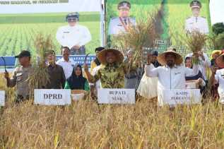 RIAUMANDIRI.ID, SIAK - Bupati Siak Alfedri menghadiri panen padi perdana di pers.