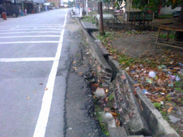 Dinding Parit Jalan Hang Tuah Amruk, Badan Jalan Miring
