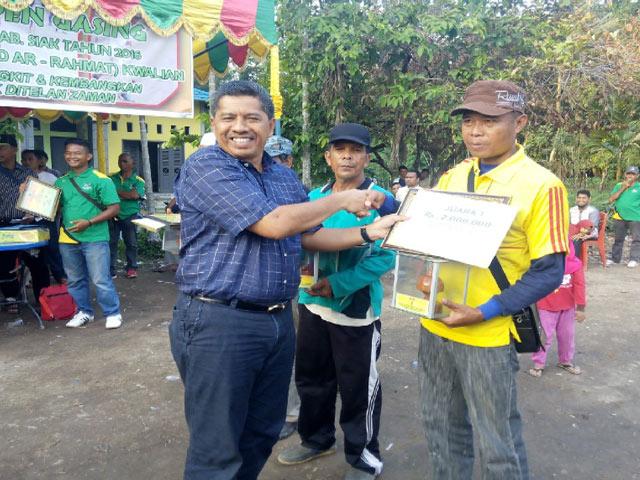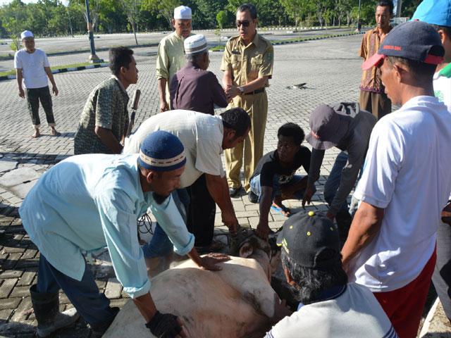 SIAK (RIAUMANDIRI.co) - Bupati Syamsuar menyerahkan dua ekor sapi hewan kurba.