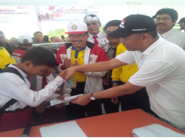 SIAK-Usai membuka Porseni tingkat Nasional tahun 2016 di depan istana Siak,Menteri Pendidikan .